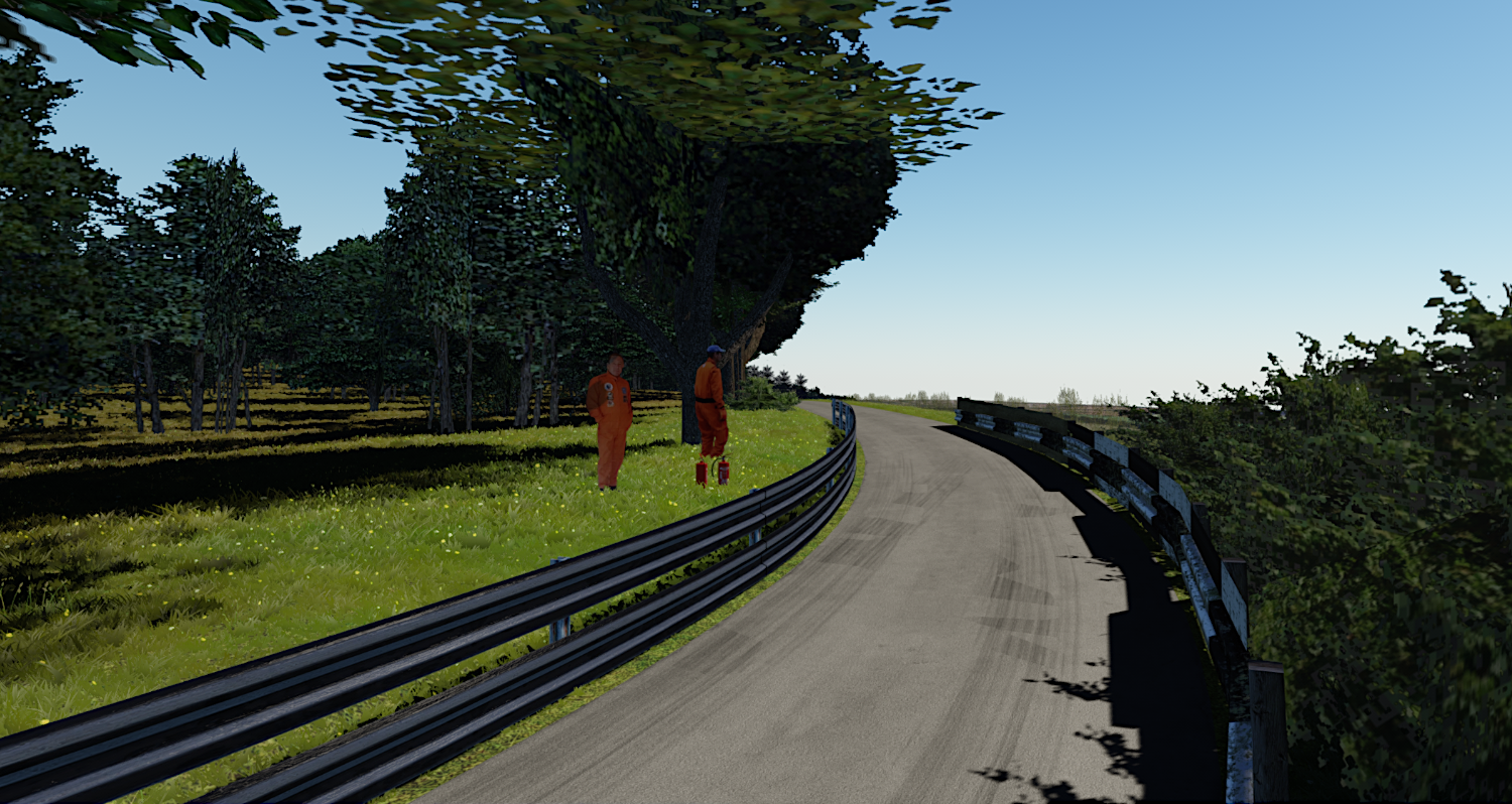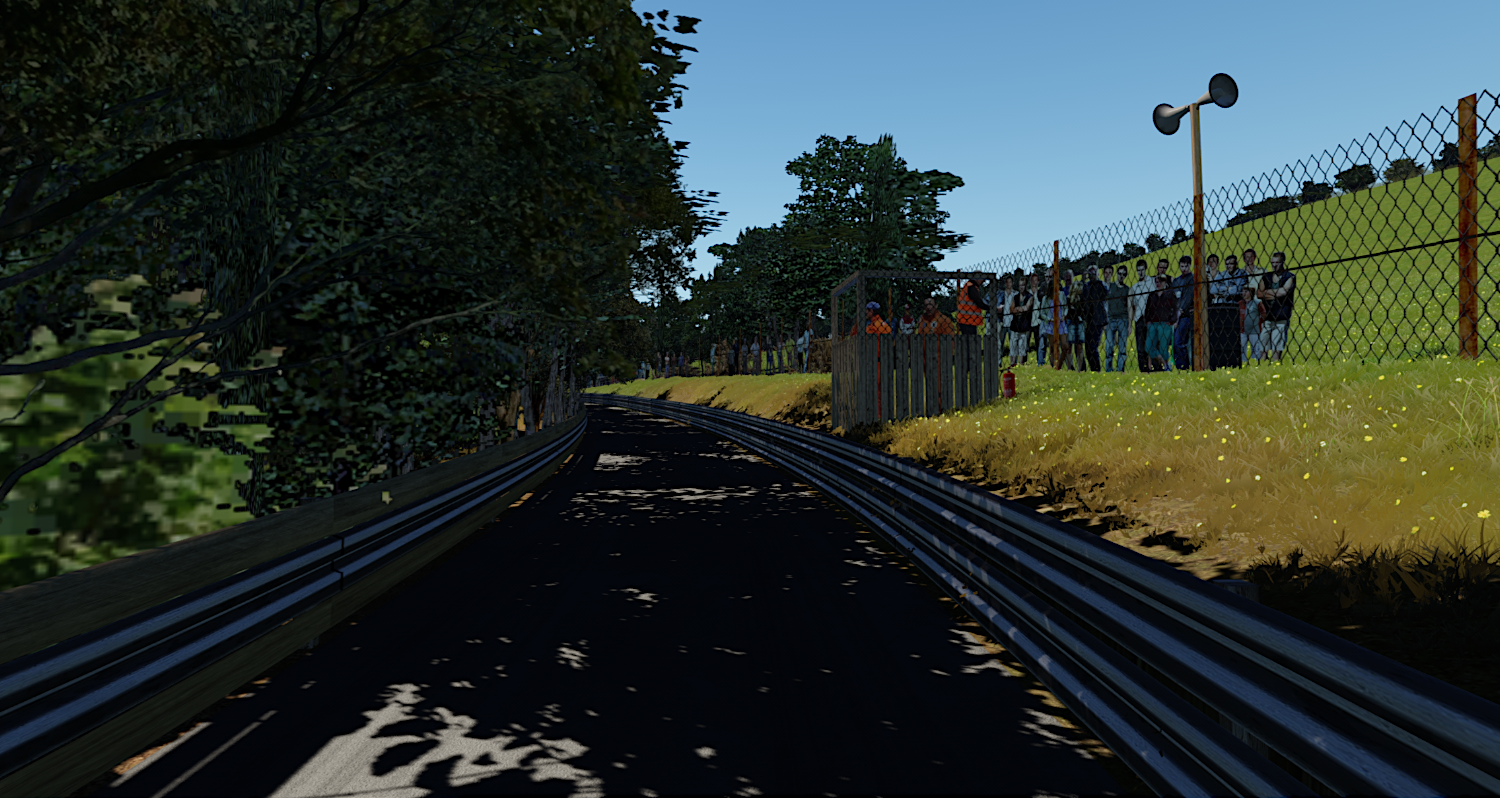 28.03.2026 - Strecke und Terrain bis "Top Holding Paddock" gestaltet - Zuschauer und Streckenposten hinzugefügt - Reifenspuren hinzugefügt - Reifenstapel im Bereich "MEADOW" durch Holzbarrieren ersetzt - "collision walls" für Leitplanken und Mauern hinzugefügt |