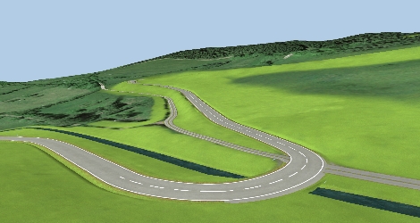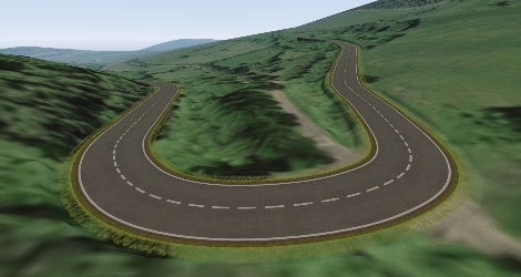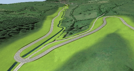 16.12.2017 - Terrain angepasst - abgehende und kruzende Straßen hinzugefügt - Parkplatz nach der 2. Kehre hinzugefügt - Straßenübergänge angepasst - Kreuzungsbereich gestaltet | |