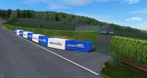 07.11.2021 - weitere Wege im Fahrerlager und Startbereich hinzugefügt - 3-D Modell der Kirche St. Andrew's esrtellt - "treewalls" auf den umgebenden Hügeln erstellt - Hecken und Zäune im Bereich Fahrerlager und Start hinzugefügt - Vegetation im Bereich Fahrerlager und Start hinzugefügt - erste Werbebanner und Hinweisschilder hinzugefügt | ![]() |